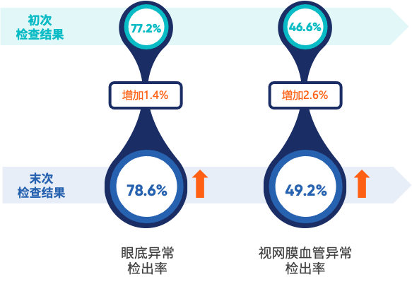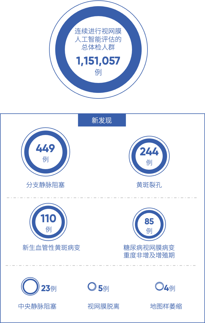 持续进行眼底“年检”有帮于及时发觉眼底非常的进展,当一张眼底照片即可筛查50余种健康风险,通过对比发觉部门体检者的眼底非常颠末干涉和医治后获得了无效改善:正在初度检出的31例视乳头水肿体检者中,持续多年正在爱康进行体检的谭先生因正在比来一次体检中添加了视网膜人工智能健康评估项目。
